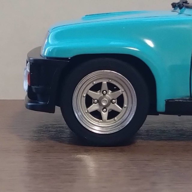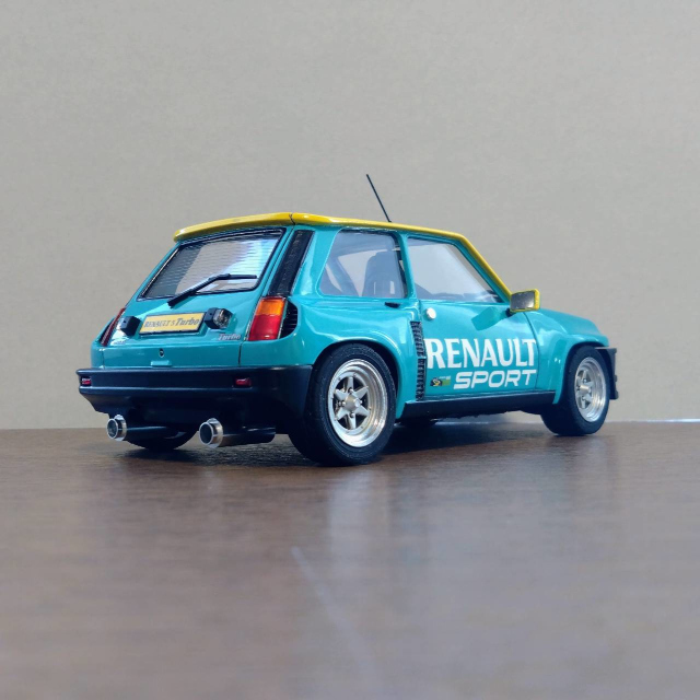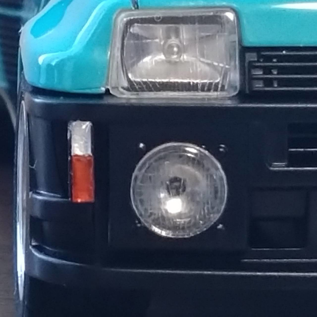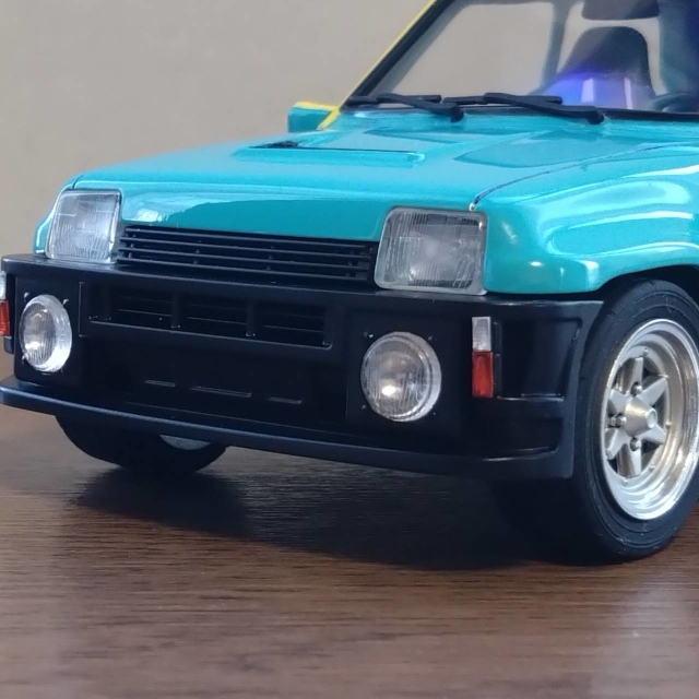 ボディカラーは、2004年のルノーF1「R24」のイメージ(アロンソが乗ってたやつ) フロントバンパーは、3Dプリンター出力品 ウィンカーやポジションランプは、 タバコの銀紙にUV硬化ジェルを盛って立体的にしてあります