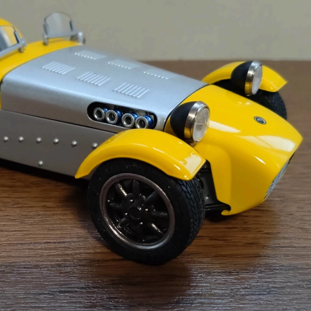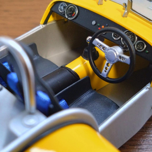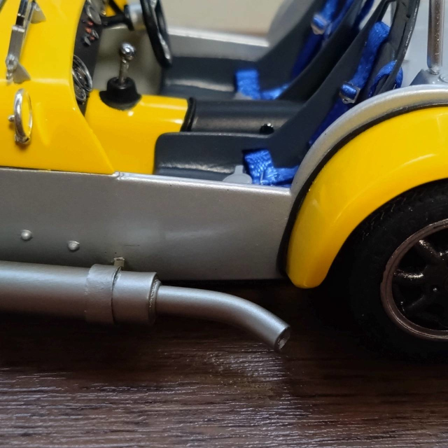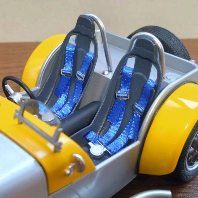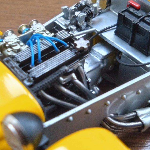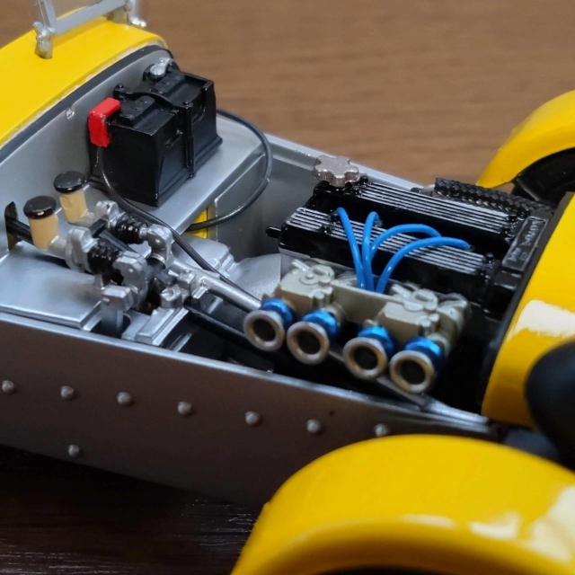 3Dプリンター出力品のサイクルフェンダーとフルバッケットシートで、 やる気モード全開(笑) エンジンは、ロータス・ヨーロッパからヘッドとカムカバーを移植して、 なんちゃってロータスツインカムに。 タコ足は、ハンダを現物合わせで曲げて作りました。 ずいぶん前に生産休止になるタイミングで、 アフターサービスから主要パーツだけ取り寄せていた物で、 いろいろ寄せ集めですがなんとか着地できました。 三越斜軽様 作
